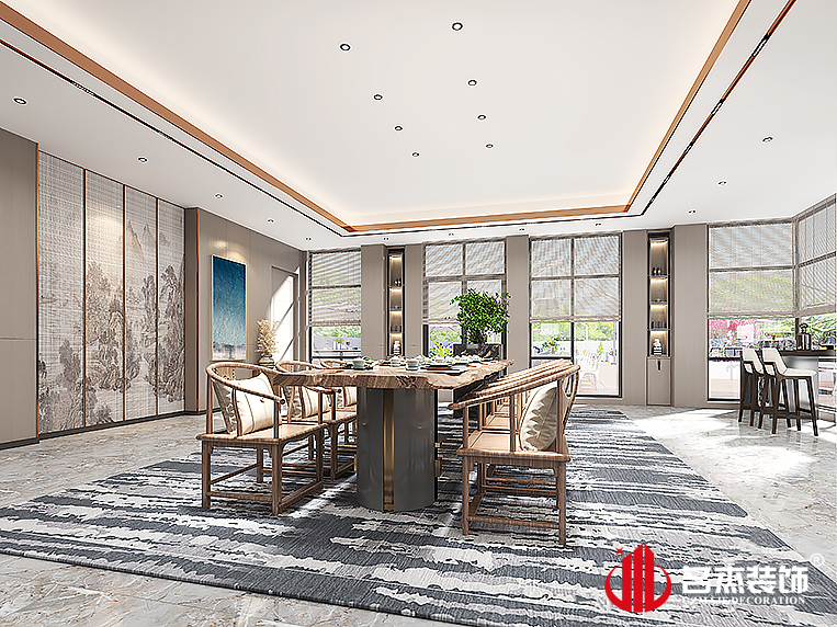 這次是一家以承建鋼結(jié)構(gòu)廠房及輕鋼活動板房的專業(yè)化公司,集設(shè)計、制作生產(chǎn)、安裝、維護(hù)、代客搬遷為一體的集團(tuán)化企業(yè)。設(shè)計師運(yùn)用時尚簡約的風(fēng)格,將該企業(yè)行業(yè)所具有的特色都完美的復(fù)刻出來。空間中也嘗試加入不同的吊頂造型,展示出不同空間的不同做法。中式元素的加入也讓整體空間變得更加沉穩(wěn),展示出傳統(tǒng)行業(yè)的特色。
